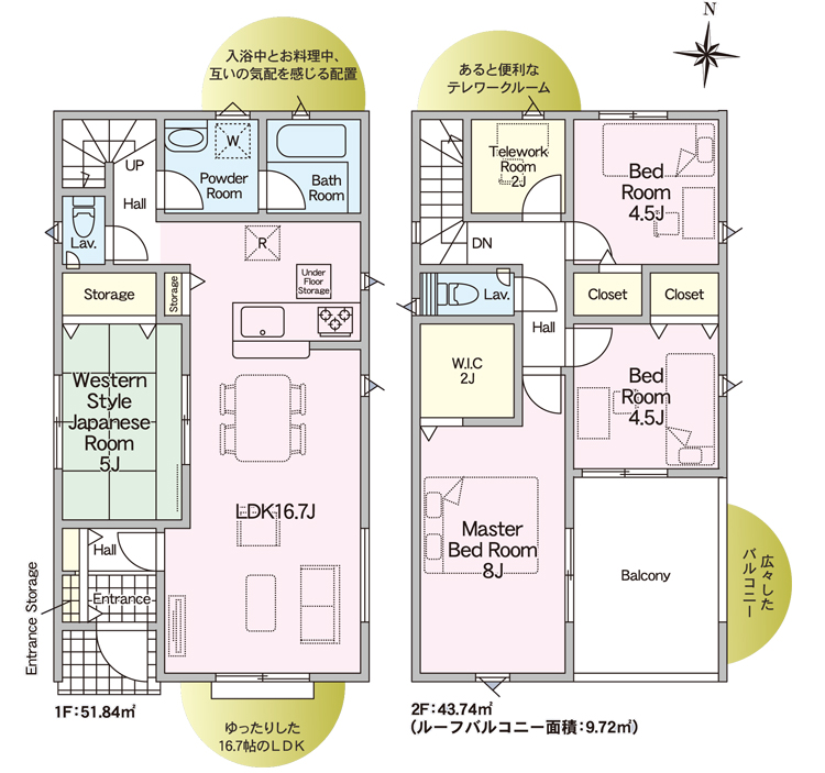 バルコニー/ウォシュレット/シャワー付洗面化粧台/システムキッチン/対面式キッチン/浄水器/IHコンロ/オール電化/追炊機能/給湯/シャワー/室内洗濯機置場/モニター付きインターホン/駐車場・庭付き/浴室乾燥機/浴室1坪以上/トイレ2か所