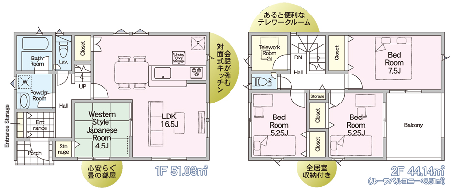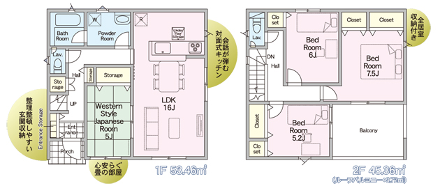 - 95.17㎡(28.78坪)~98.82㎡(28.89坪)
